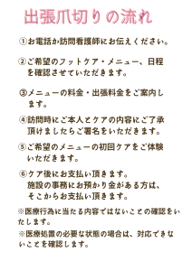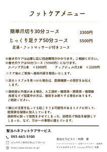 爪や足のトラブルでお悩みの方はご連絡お待ちしております。