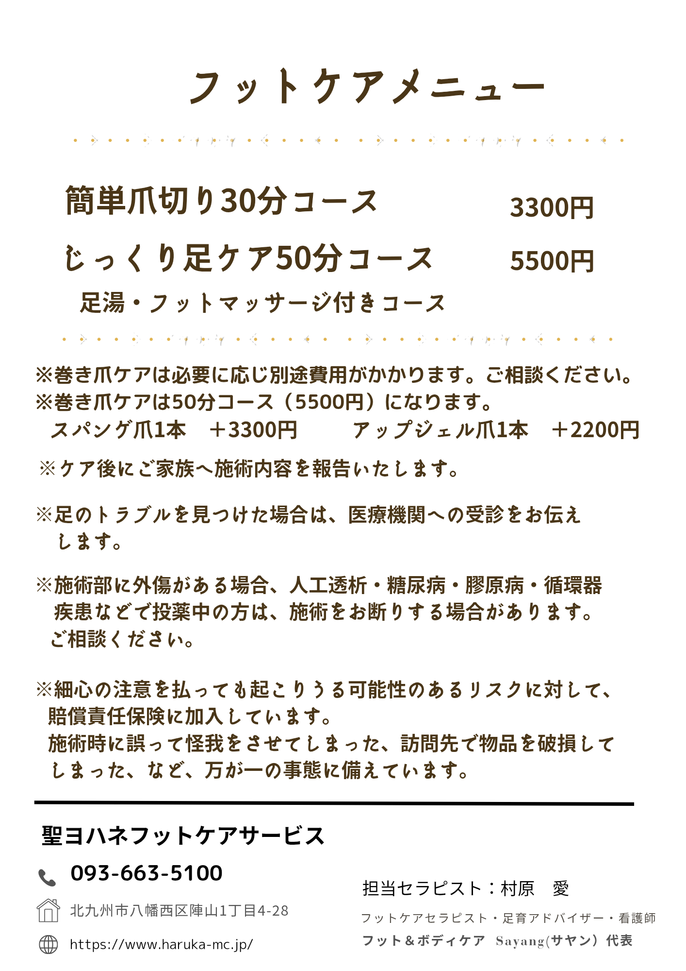 聖ヨハネ病院ではフットケアサービスを行っております。